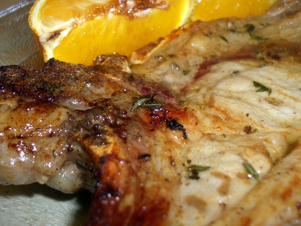Сахар содержащийся в соке цитрусовых карамелизируется и придает мясу неземные оттенки. Незабываем слегка посолить.