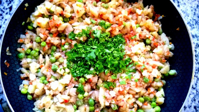 Запах стоит такой, что прям Тадж-Махал появляецца перед глозаме и хочется петь и танцевать. Главное – гарам масалы не пожалеть и забросить целую столовую ложку с горкой. В индийской кухне специй много не бывает. Еще жарим минут пять и ставим остывать, предварительно насыпав туда кинзы.