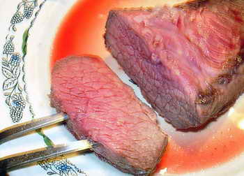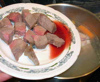 На приведенном ниже снимке видно, что мясо есчо не доварено и вовсю сочится соками.