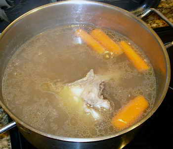Кипятим в кастрюле воду и (АХТУНГ!) только после закипания кладем в нее мясо с костями адним, в карйнем случае - двумя кусками. Ниже я объясню суть этого приема.