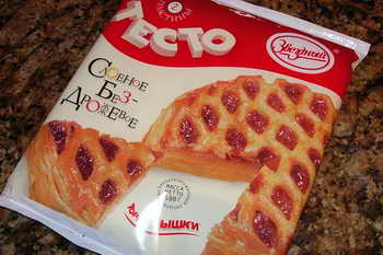 Ну, а мы пока приступаем к изготовлению пампушек. Включаем духофку на 250 градусоф и достаем из халадильника замароженный пакет теста.