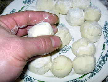 Формируем ис теста небольшие шарики (чуть больше грецкого ореха).