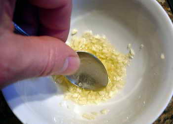 Кладем их на смазанный растительным маслом противень поширше, паскольку пампушки начнут расти. Загоняем противень в духовку и песдуем готовить запрафку ис чиснока. Для этого кладем в плошку пару измельченных зубчиков, дабавляем две лошки растительного масла и каким-нибуть падручным средством слехка чисночок растираем.