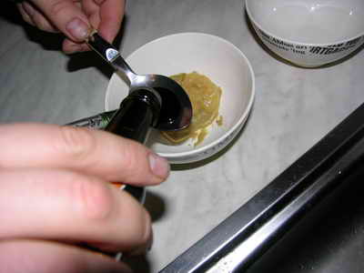 Берем столовую ложку горчицы и столовую ложку мёда.