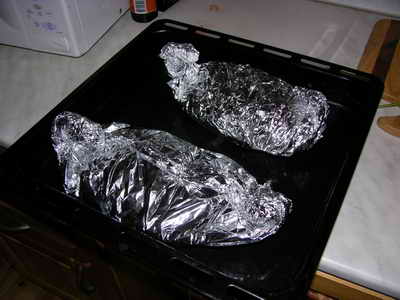 Повторяем процесс для второй порции и ставим в предварительно разогретую духовку (примерно 220 градусов, примерно 20 минут).