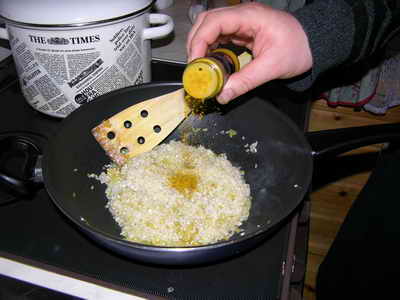 Еще немного слоим и еще немного шафрана. Нкоторое время помешиваем на сильном огне.