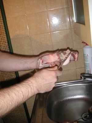 7. Мыть сало не стоит, просто соскабливаем со шматка верхний слой жира