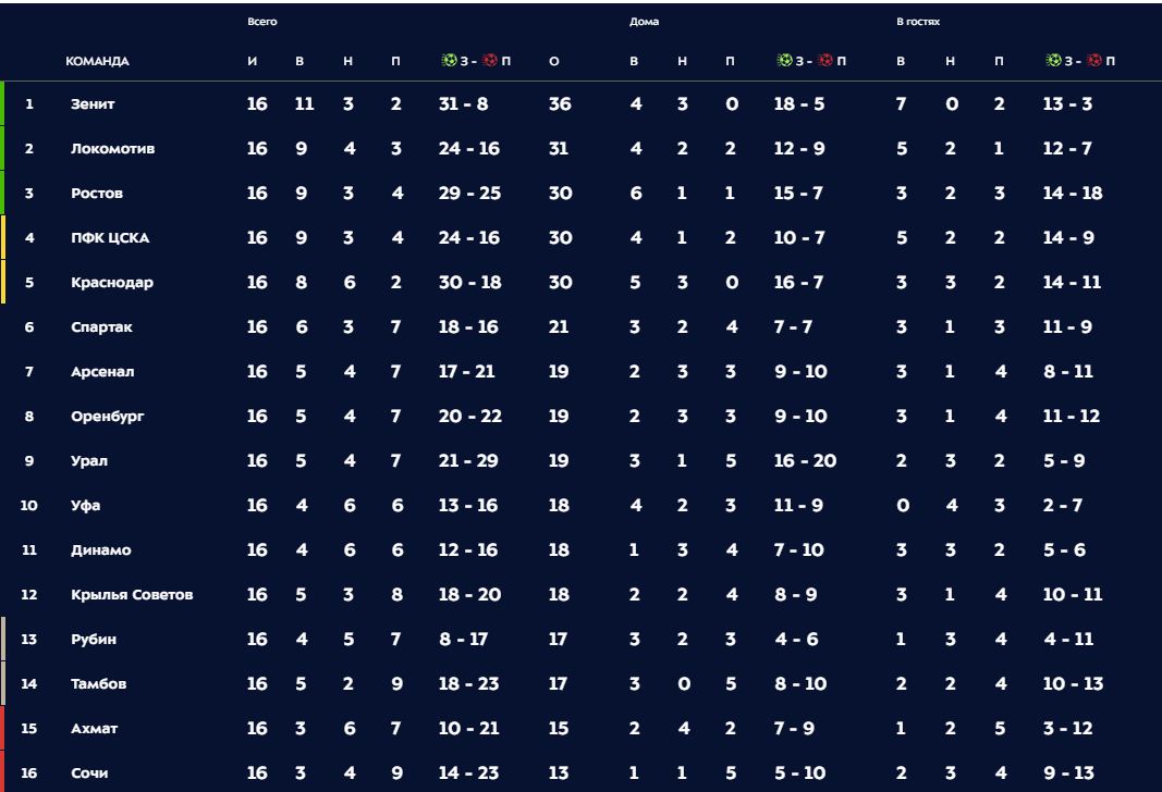 7. 24.11.2019 16:30 Арсенал Т-Краснодар 1-3