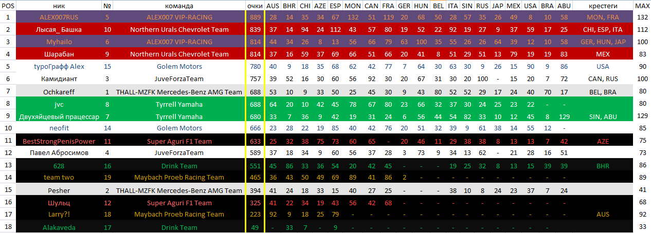 Для прошлогодних же призёров чемпеонат не сложился – кто-то допустил кучу ошибок в начале сезона, кому-то приходилось весь сезон мучацца с непослушным ведром, которое им построили их команды, но, тем не менее, Ачкарефф и Двухяйцевый працессар заняли места фдисятке и ниипёт.