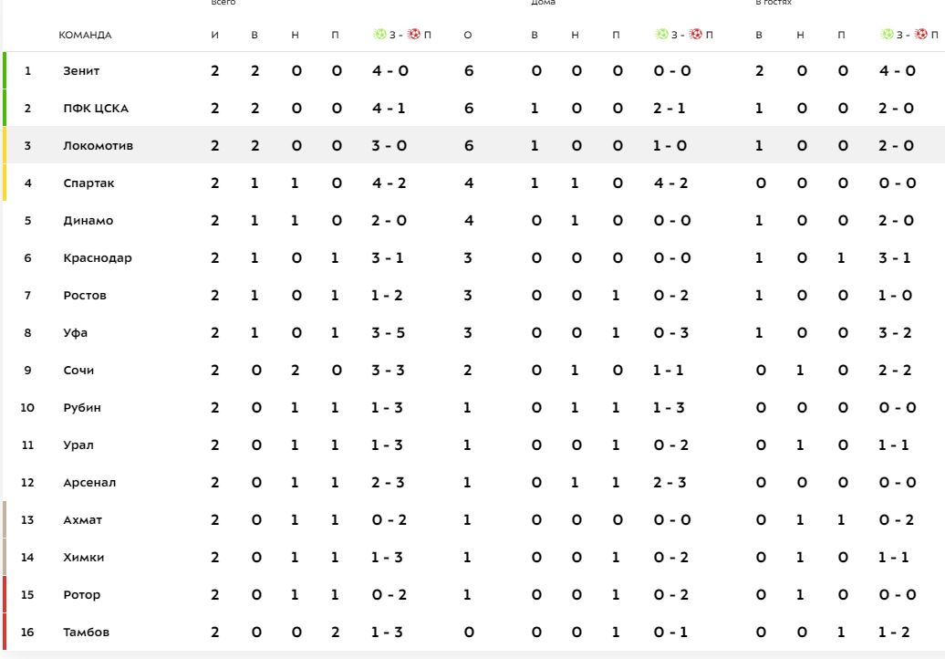 Всем привет, парни. Больно рассусоливать на этой неделе вряд ли получится, поэтому криватос закидываю, чисто что бы освежить поляну. Довольны? Ну и заебись. Второй тур конешна вышел ярким в своем роде. Дежурные победы, ничьи и поражения. В принципе тех, кто и должен был побеждать и проигрывать. Немного смутил Краснодар. После ахуенного старта в Уфе, превратился в какого то блять моллюска, которого Локо перемолол и съел. Ну ниче, вазможно из за раннего начяла сезона есть какая-то нестабильность. Да и сопернек был все таки из тройки лидеров. Мясо должно быть довольным послде исхода с Ахмадом. Все за что было зацепиться, судьи увидели и зачепились. Заслуженная победа. Просналась Уфа наконец то. Кони стабильны. Зенит снова победил не без вопросов. За Ростов и Валеру лично по-прежнему обидно. Астальные ведут бои местного значения. Кандидаты на вылет уже определились. Пахоже тамбову песда (хотя буду рад ошибиться)