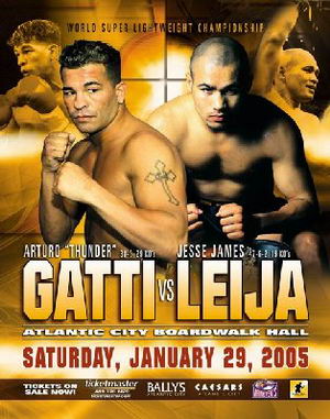 29 января 2005 г. то исть в эти выхадные Артуро Гатти будет защищать титул в бою с Джеси Лейхой. Лейха – крепкий середнячок, 38 летний ветеран, который не прочь на закате карьеры урвать какой нибудь поясок. Посему бой обещает быть интересным. Этот бой мы увидим почти в прямой гыгы трансляции в воскресенье вечером по 1 каналу.