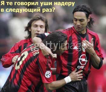 Милан на Сан-Сиро принимал Брешию, которая после этого тура оказалась на последнем месте. Забили россонери быстрый гол. На 14-ой менуте Руи Кошта кроссивым ударом с угла штрафной хуйнул мячик почти в дальнюю девятку. А за пять менут до конца Пьер Воме свёл сторания миланцев на гавно. Ну патом в интервью всяческих, тренер и игроки отпёсдывались, што мол устали после ЛЧ, што соперник попался раненый зверь. Исчо следует заметить, што в саставе Милана не было дисквалифицированных Стама и Кака, и травмированных Мальдини и Каладзе. Вот эти травмочки, как нехуй, могут перекантовать в Лигу Чемпионов. Плюс исчо Милану придёццо обойтись без Гаттузо, у которого перебор жовтых карточек.