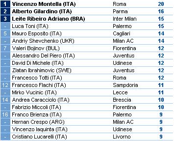Бергамцы бьют всех и вся одерживая уже третью победу кряду, в таком тэмпе щаз прут пожалуй только Юве с Миланом. Казалось бы Аталанта повторит прошлогодний путь Анконы, ведь клуб далеко отстал по очкам и выглядел безнадёжным аутсайдером. Однако бергамцы проявили характер и сдвинулись таки с последнего места в чемпеонате. Разгромили они в этом туре Кьево. Сначала опытнейший кипер Кьево Маркеджанни сбивает Макинву на 6-ой минуте и пропускает с пенальти от Марколини, на 14-ой менуте Макинва удваивает щот, а на 21-ой Кьево не забивает с пенальти, и итог матча уже видиццо решённым.