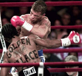 Однако, не всегда все решают промоутеры и их деньги. Есть в боксе, да и вообще в любом боевом или игровом виде спорта, такая особенность - выходя на ринг (площадку, татами, дадянг, поле), спортсмены частенько забывают, что на кону стоят огромные деньги и начинают биться по настоящему. Но раз уж сегодня мы говорим про бокс, возьмем пример из этой области. Есть один боксер, поединки которого я всегда смотрю с особенным удовольствием. Когда я впервые посмотрел фильм "Рокки", во время кадров, где противники молотят друг друга, практически не защищаясь и, что самое интересное не падают от зубодробительных ударов, я презрительно улыбался… Дескать, так только в кино бывает. Но, повторюсь, "есть такой парень". Он дерется именно так - бескомпромиссно, пренебрегая защитой.