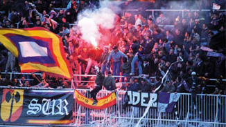 Пиздец, вобщем. Скоро на эстадио будут сидеть папы с детьми и радостно махать флажками. А милиционеры будут ходить и улыбаться. Конечно, пиздюлей то за свое тупоумие не от кого получать будет. Не будет ни слэма, ни шизы, ни баннеров (хотя достойных баннеров на наших стадионах уже давно не видно, если только не считать лошадиное убожество типа "верим в команду" или "не отступать и не сдаваться" - и смех и грех, право), ни полотнищ, ни файеров, ни ракет, ни дымовухи, ни песен, ни зарядов. Уже сейчас основа многих столичных клубов предпочитает не посещать домашние матчи своих команд, попивая пивко у телевизоров или в барах. Говорят - паливо. Так кому же будет такой антураж нужен??? Ведь футбол - это на 50% антураж. Игрокам станет попросту скучно. Забивает нападающий гол под одобрительные хлопки публики. И я скажу за себя - я хожу на эстадио НЕ ТОЛЬКО посмотреть футбол. И если мне не будуть давать делать там то, что я хочу и считаю нужным для поддержки команды - я не буду туда ходить. Не хочу вдаваться еще дальше в причины всего этого - вывод-то ясен и так. И вообще, я отвлекся чего-то.
