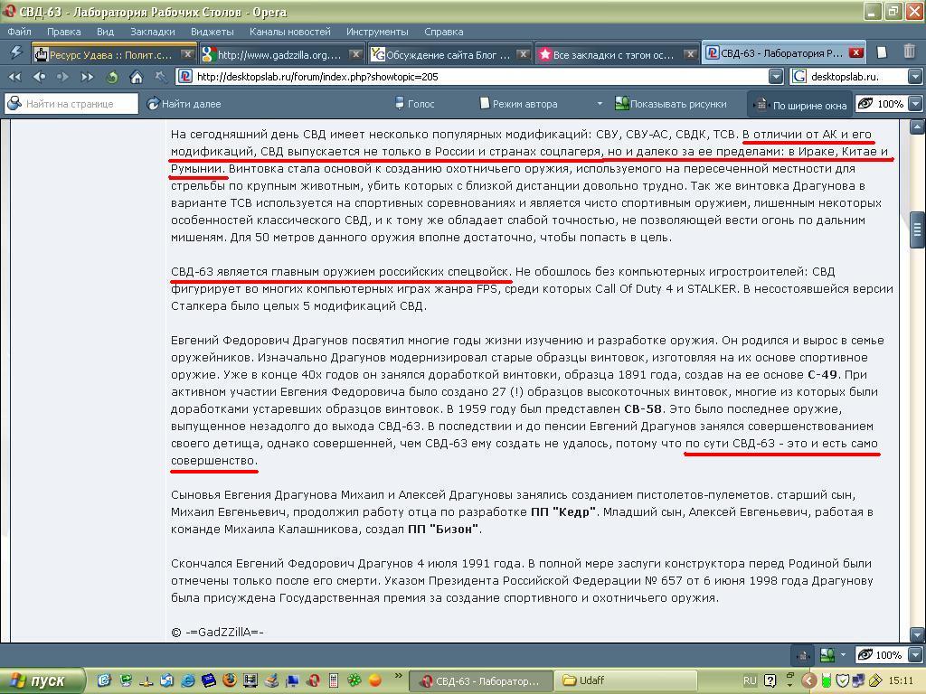 Собственные идиотские статейки про АК и СВД на своем сайте http://www.desktopslab.ru/ этот предураг снес, но профессор матроскинЪ мужик основательный и аппаратура принёмм … принёмм …