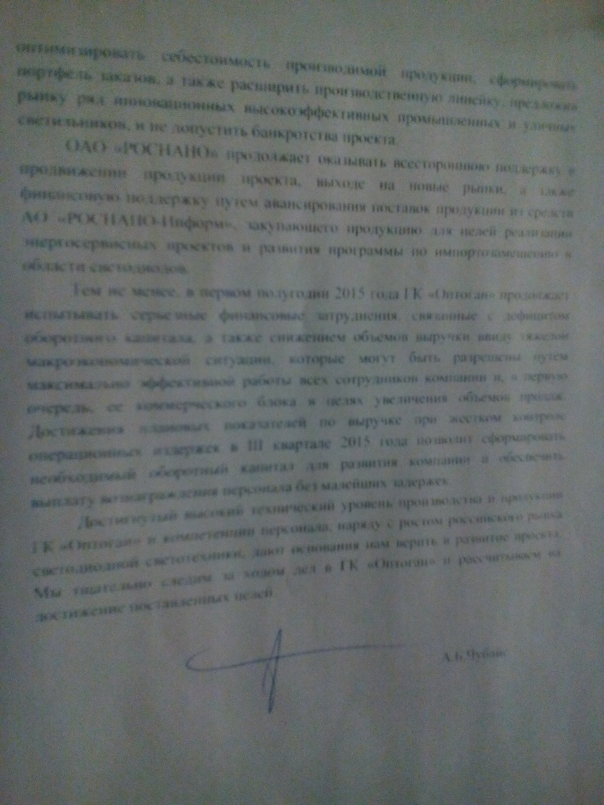"Уважаемые лошары! Обычно таким людям все говорят: "Поздравляю, Шарик - ты балбес!" Вот и я Вас поздравляю. С момента своего основания и по сей день ОПТОГАН является моей генеральной кормушкой наравне с кластером инноваций и прохуяций "Сколково". Через ОПТОГАН я обналичил нихуёво так - 2,5 млрд. бюджетных денег, потратив на сам завод около 100 млн. рублей.