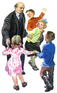 Потом Ильич еще пил чай с французской булкой, а после, когда пришло время нам уезжать, детишки обступили Ленина, стали тянуться к нему - прощаться. На их почти прозрачных лицах сияли улыбки - они были счастливы.