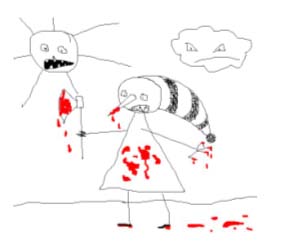 Как-то раз его рисунки увидела мама и очень расстроилась. Позвала папу. Тот очень долго задумчиво чесал голову и как-то странно смотрел на Мишку. Потом его отправили спать. А мама с папой всю ночь сидели на кухне и говорили про какие-то "мании" и про какие-то непонятные "диспансеры".