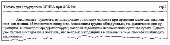 Несмотря на возможное в скором времени закрытие, сотрудники СПИБА продолжают самоотверженно трудиться. Сейчас они стоят на пороге фундаментального открытия: возможно, что алкоголиты разумны и с ними можно будет установить контакт. Больше на эту тему офицер СПИБА отказался разговаривать. Но я и так был доволен полученной информацией.