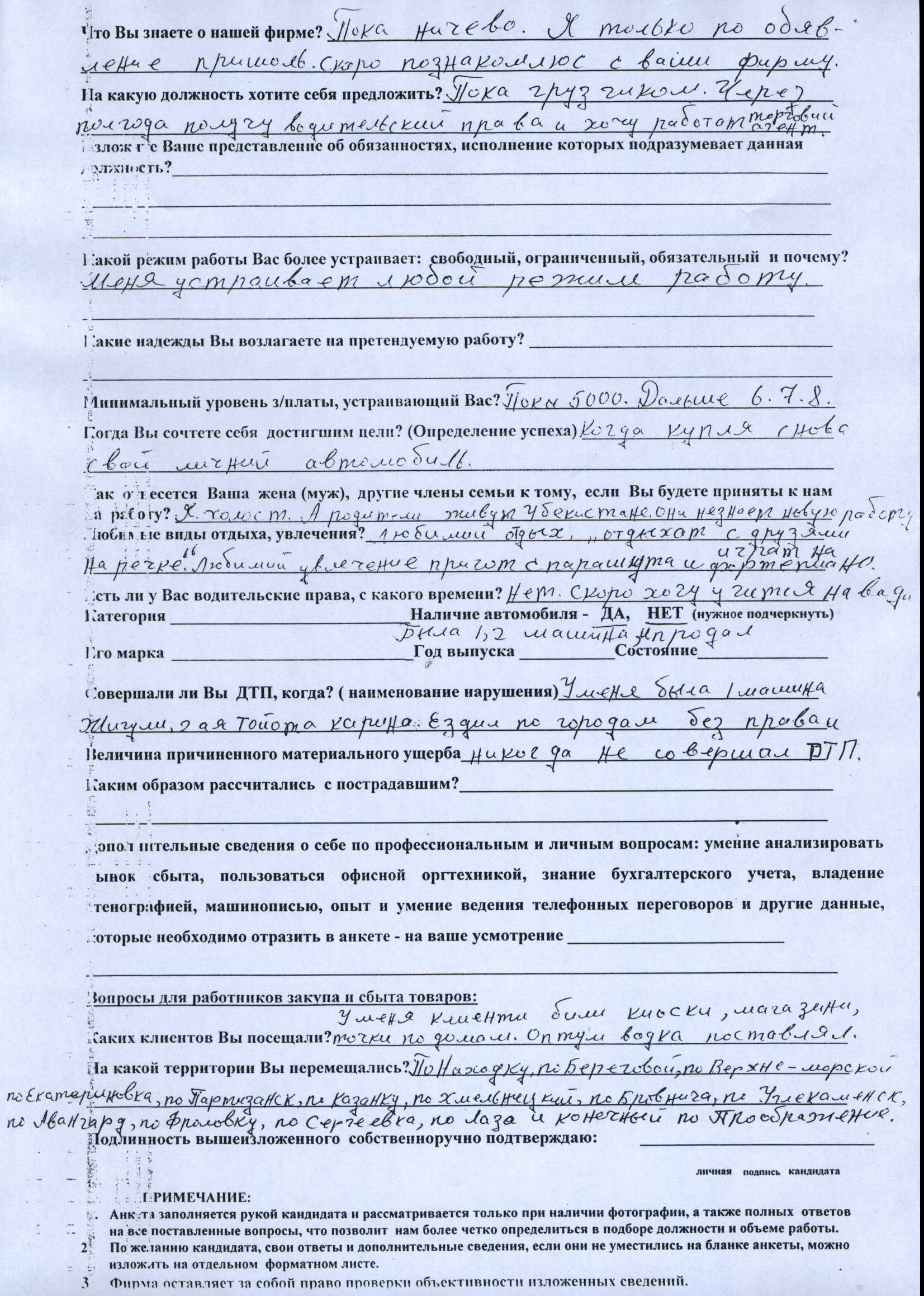 Радует одно- что его всё-таки не взяли грузчиком. Из анкеты видно, что от толковый работник, и ему не место в такой отсосной фирме, где даже "канфидецальность" обеспечить не могут. Отсосы- хуле.