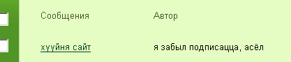 Атжог на кубике, бугы гы - интиресна, шо ф башке админа таво ща тварица - измена и ахтунги? Ведь ета спосаб заивить а сибе - сотни падонкав срут па гастивухам, форумам и прочьей паибени... Тока биз фанатизма, ну иво ф писду...