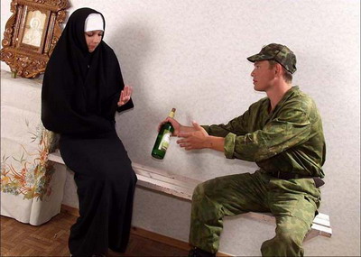 Солдат не хотел, чтоб монашка забеременела и решил кончить все же ей в рот