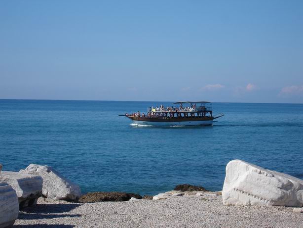 На следующий день улетел я в Турцию. Про Турцию тоже пейсать много не интересно, патаму как многие из вас в ней побывали. НО….. Дабы развлечь себя и отвлечся от футбольной возни заебавшей нас на 3-и сутки, я с двумя корешами взяли на сутки в прокат скутеры-мопэды-дырчики (Ямаха 125 кубиковая, до 90 разгоняется и дальше никак, но все равно страшно, сука) и пагнали по близ лежащим городам и весям. Сначала сьездили в Аланью и посмотрели порт и развалины старой крепости, потом в город Манавгат на водоподы, а затем в город Сидэ, глянуть на развалины храма Аполлона и прочие остатки греческого пребывания.