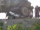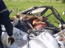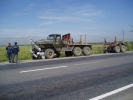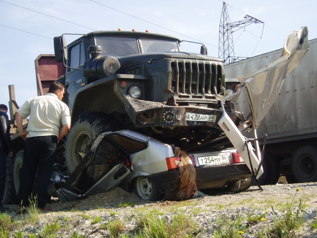 Это под Нефтеюганском. Водитель-пацан вёз банковских теток куда-то, и при обгоне автобуса, что-то с колесом, по-моему, случилось. Он на обочину и УРАЛ туда же.