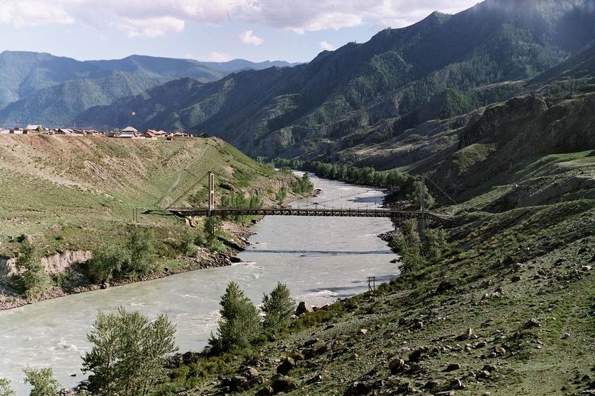 07 Мост через Катунь в пос. Иня (первый в мире подвесной мост)