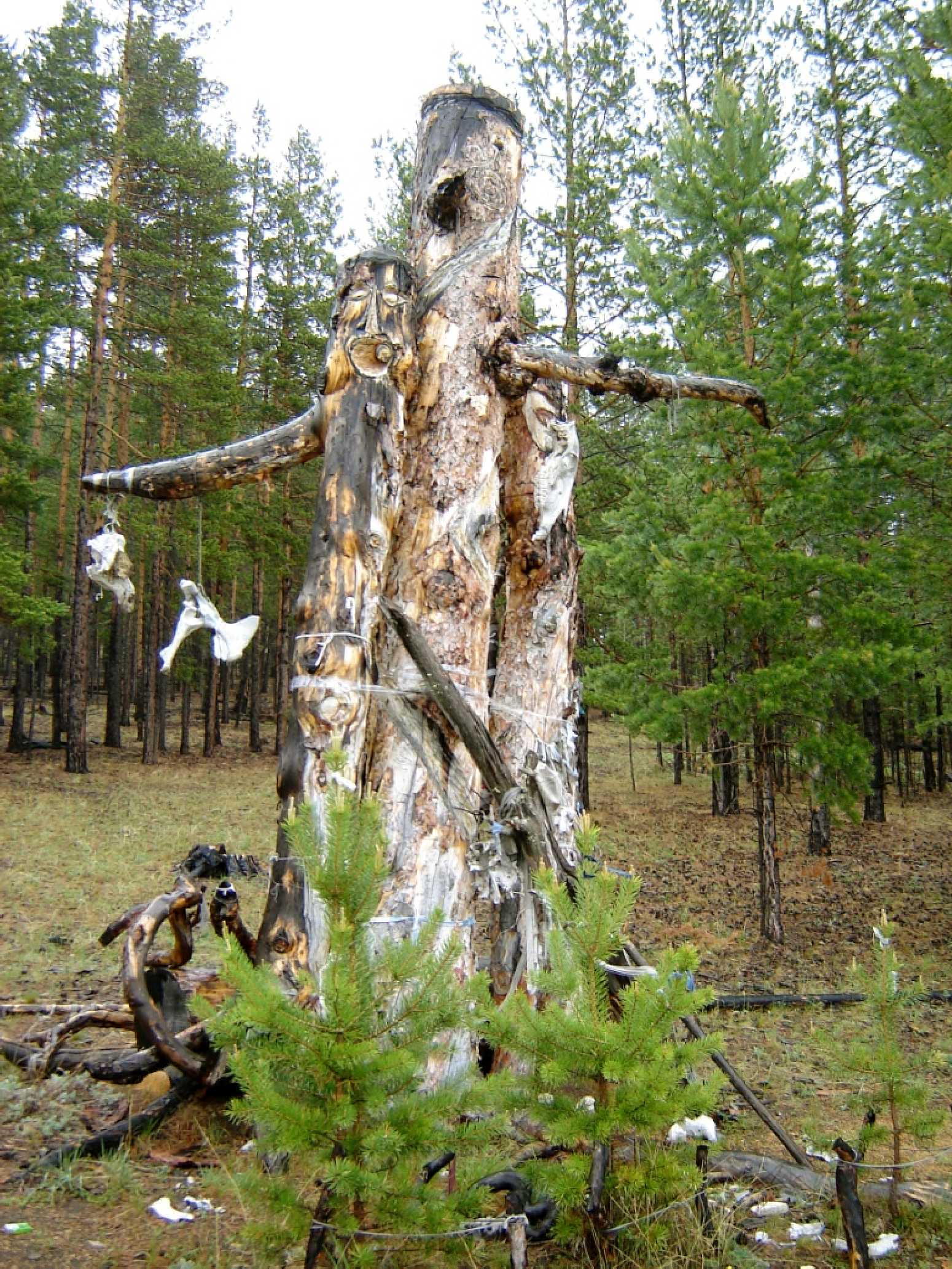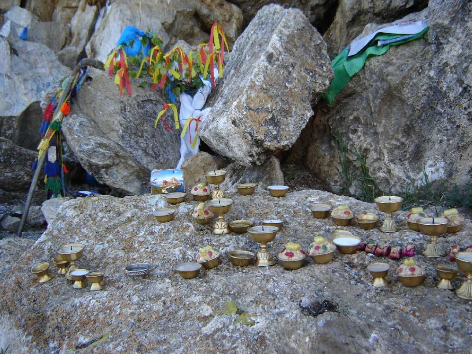 Место жертвоприношения на озере Шара-Нур. Серьезная точка, для бурятов каждый бугорок на дороге святое место, каждый раз проходя мимо необходимо задобрить дух Ольхона подношением, что называется «оторвать от сердца»: деньгами, ленточками, сигаретами… для кого что дорого. Чаще всего капают водкой и себе не забывают наливать.