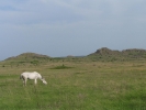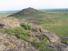 Каменная гряда, поросшая сухим лишайником, как будто раскрашена гениальным художником-импрессионистом: сквозь пятна бледно-зеленого и темно-желтого тепло светятся вкрапления розового и темно-красного гранита, образуя таинственные начертания. Иногда линии напоминают извилины человеческого мозга – в них мудрость тысячелетий. Воздух степи пропитан ароматом цветов и возникает чувство зависти к скифам, некогда обитавшим здесь “как у себя дома”.