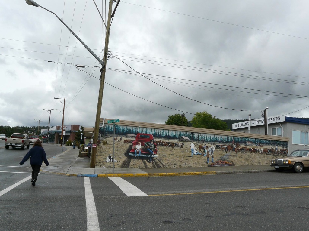 Но чем дальше и выше, тем меньше попадается этого нестеснительного народа (3-5). Зато попадаются ностальгические березки (2) и жуткие следы китайского жучка, понаехавшего в шаландах с китайскими шмотками и пожравшего много-много леса (все что растительное но не зеленое - полностью убито). На пути самое большое поселение - поселок городского типа Вильямс Лейк, в котором до сих пор чтут традиции ковбоев и золотой лихорадки (6-8). Кстате, многие кто не в теме думают, что золотая лихорадка - это Аляска, и все такое. Между тем, это был, в основном, Юкон, т.е. не Штаты вообще. Там и Джек Лондон ошивался. А дорога на Юкон как раз и идет через Вильямс Лейк. Там мемориальные таблички стоят, на путях боевой славы золотоискателей. Элементы суровых нравов сохранились по сей день. Там не только кофе ковбойский (6), но и на угонщиков расставляют ловушки: если машина не закрыта, это может быть специально, ты только сунься… (8)
