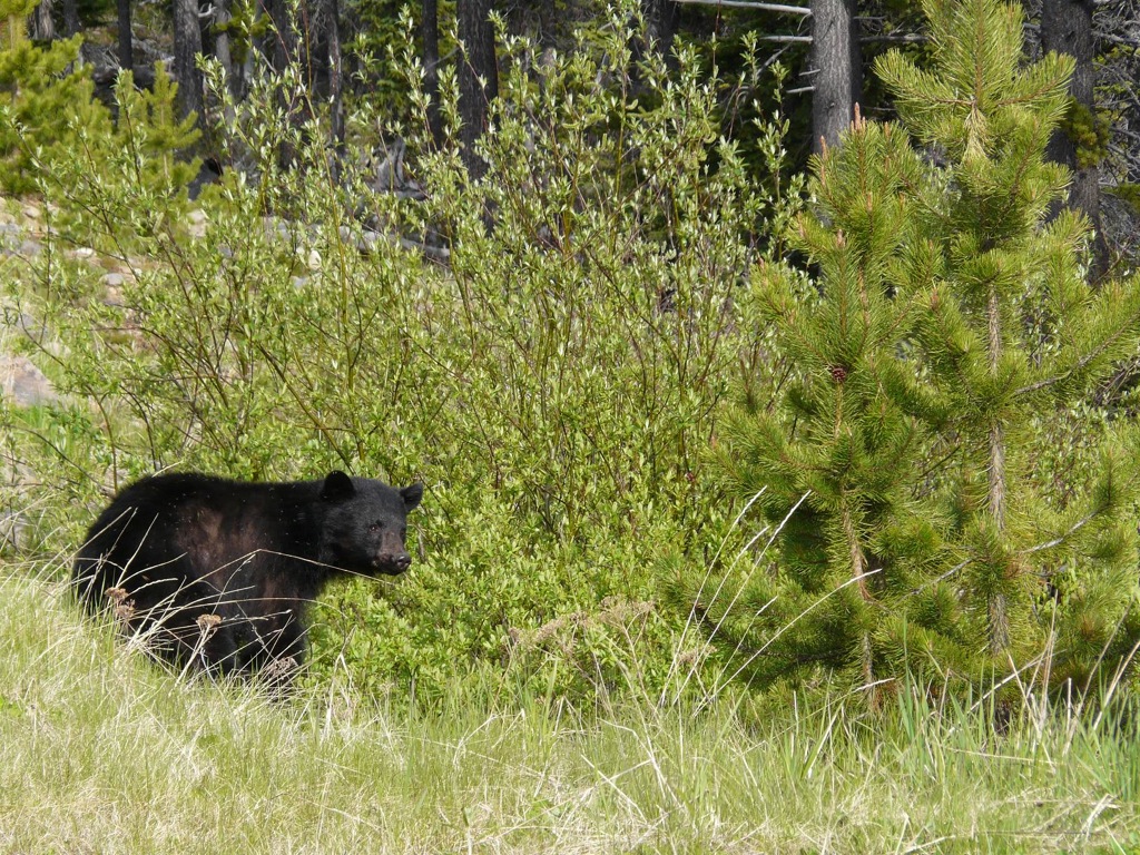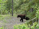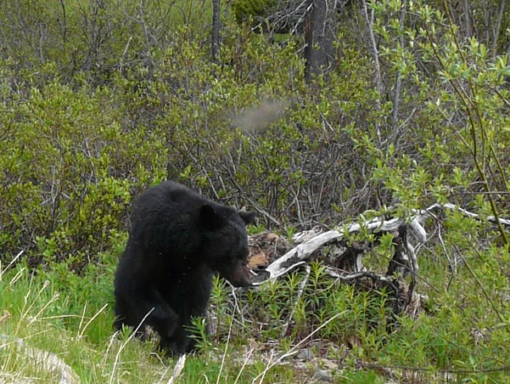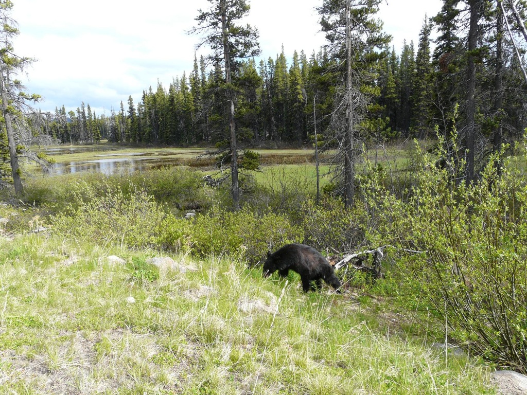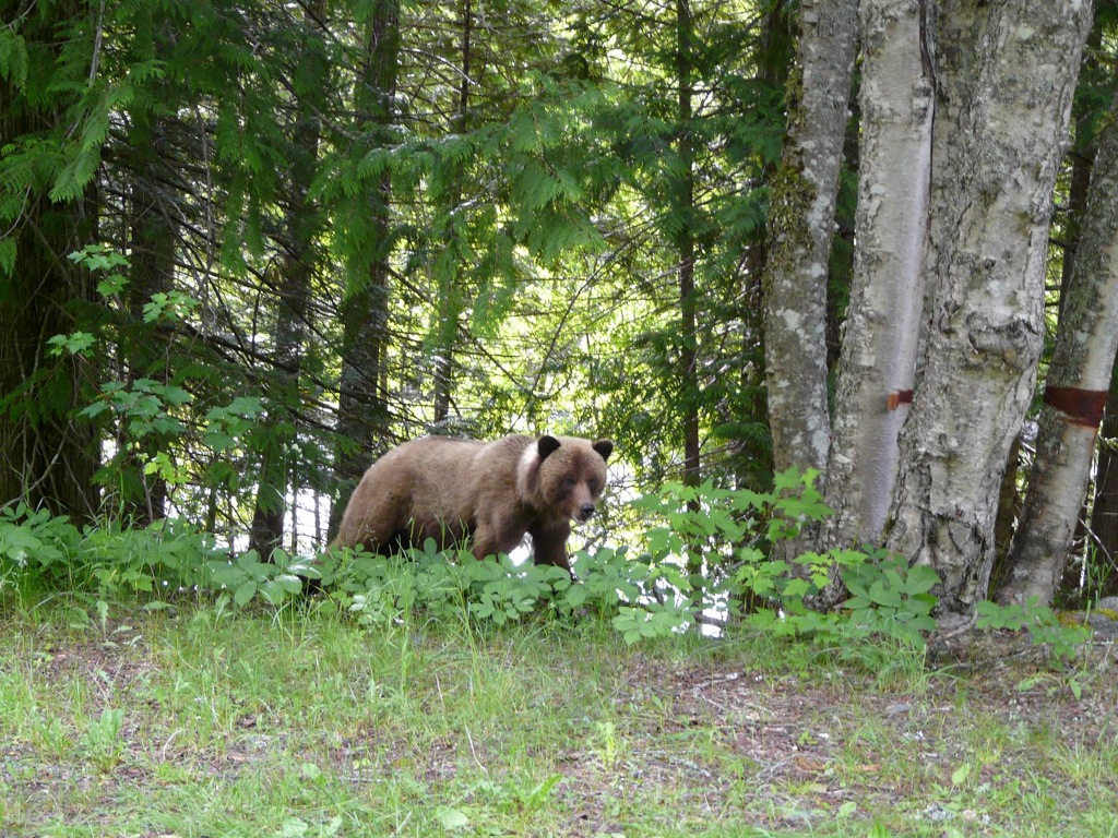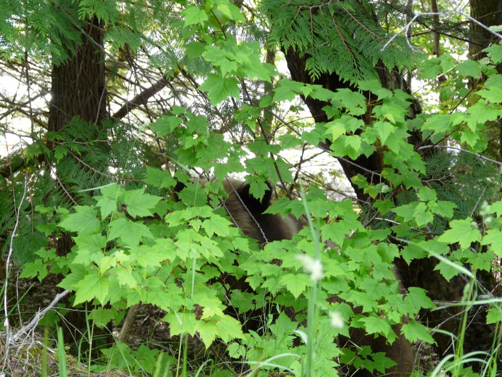 Но вот между ВЛ и Белла Кулой (она на берегу) уже ничего нет. И мало кого есть, что видно при первом взгляде на трассу (9,10). Расстояния такие большие, что практично, если там живешь постоянно, иметь гидросамолет (11). Там широко типо раскинулся Провинциальный парк Твидсмюир, о котором вряд ли кто слышал за пределами провинции, несмотря на его впечатляющие размеры (почти мильен гектаров). Когда ты в эти места въезжаешь, самое время начинать внимательно смотреть по сторонам. Вон кусты кустами, а если пригладеться, подозрительное ухо торчит (12). А вот и хозяин этого уха! (13) Он такой кагбэ немаленький, и совсем не домашний.