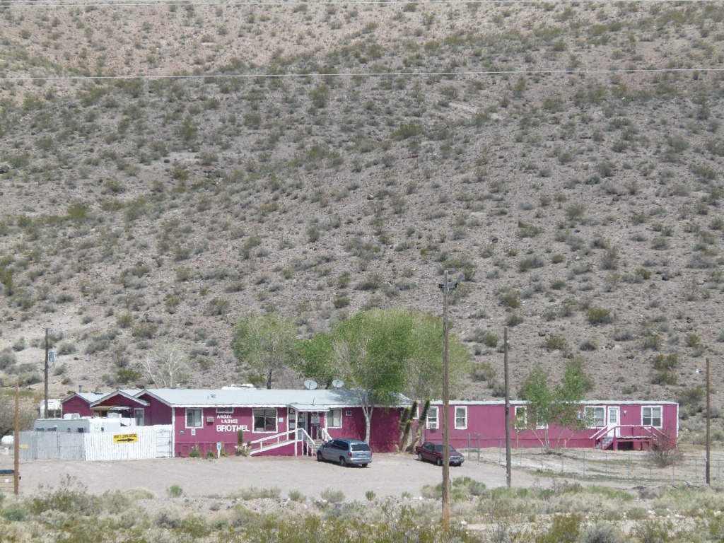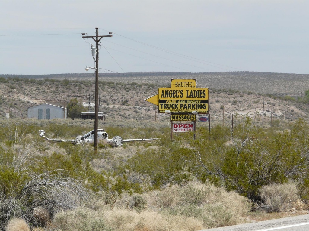 Так что названия там странные, и действительно, дорога из Невады в ДС (Death Valley) лежит через Похоронные горы (Funeral Mountains). И городки с названиями типа - вот как раз на фото 2 - Пахрумп (Pahrump). Вы бы хотели жить в городе с названием Пахрумп? Типа как все нормальные люди живут, а не в Лас-Вегасе, который чисто для туристов, и котoрый мы проехали за пол-часа (фото не сохранилось, потому что и не делали, потому что нах). Нас интересовало другое, более реальное. Вот, например, Невада - единственный штат, где официально разрешена проституция (хотя и не везде). И совсем не случайно дальнобойщики, когда везут свои фуры с запада на восток и наоборот, стараются проложить логичный маршрут именно через штат Невада. У них там есть один любимый, исторический бордель, до посещения которого водила считаеццо салагой. Но это далеко, и цель поездки у нас была чиста юннатская, так что мы ограничились краткой инспекцией состояния блядопромышленности Невады по пути к ДC (в районе г. Бетти).