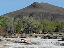 Скажу я вам, впрочем, что из живых городков, если среднего размера более-менее, то малые, типа хуторов в (полу)пустыне неприглядные совсем. Вон, полюбуйтесь: 16 - действующая прачечная-автомат в поселке, 17 - типичное поселение. Не буду вас утомлять другими картинами того же. Мы все-таки приехали не за этим (ТМ). Мы приехали посмотреть на историческую родину Тимбишы Шошонь, как уверяет нас вывеска (18).
