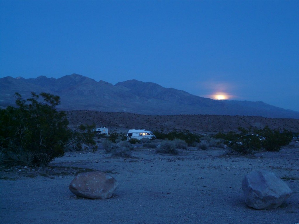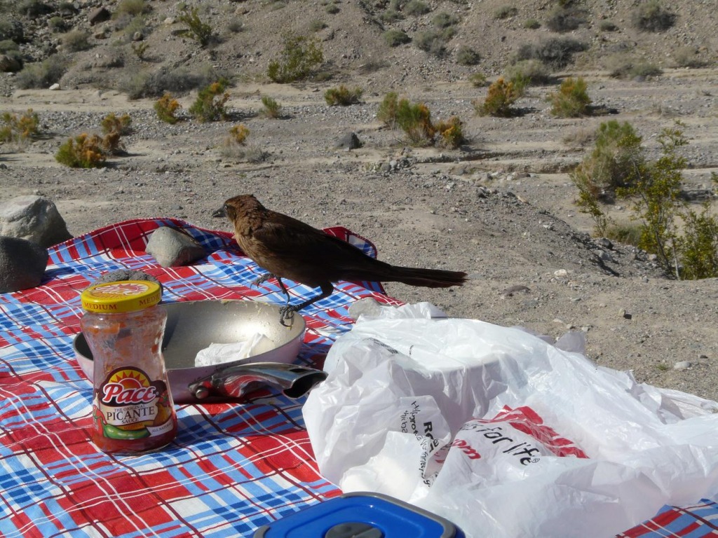 Да, если кто не понял - мы там, в пустыне, в палатке жили, срасходовав за 6 ночей 48 долларов США. Патамушта там вся прелесть именно в том, чтобы на природе. Пидарасы в шлепках, попадавшиеся иногда у официальных достопримечательностей, вызывали у нас чувство глубокого осуждения. Посмотрите сами, разве оно не стоит того, чтобы потерпеть без душа? Вот на фото 22 совсем не то, что вы подумали. Это не заход солнца, это восход луны. А вот та же (а какая еще?) луна позже: 23, 24. А поутру к завтраку причаливает наглое птичко (25). А хуле, все - природа. А отойдешь в сторону - там тебе и хилые звери пустыни (26), и даже сумасшедшие рыбко пустыне (27,28). Это - рыбка-щенок (pupfish), которой отмерен год жизни в водичке с соленостью намного выше океанской. Ей надо за год все успеть - и пожрать, и поибаццо, и детей произвести. Очень шустрая рыбко, я вам скажу.