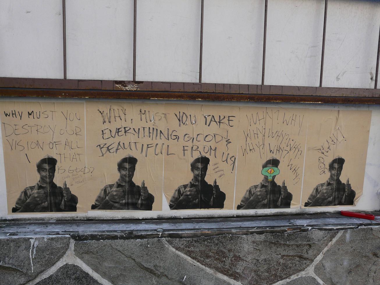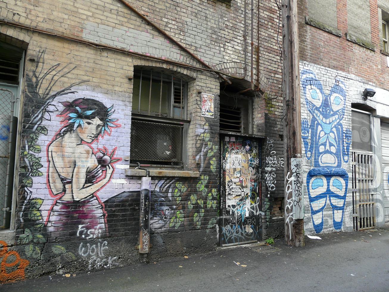 Хотя всегда можно и оттянуццо на другом. Например, петь песни протеста и непротеста (8) или рисовать граффити протеста и непротеста в тех ссаных местах, которые в Ванкувере заменяют ссаные питерские парадняки (9-12, на местном наречии это называется shooting alleys, причем shooting здесь вовсе не означает стрельбу). Я, между прочим, пока показываю вполне цивильные места. Но и там уже чувствуется, что за любым углом тебя может ждать типа сурприз. Если отец-основатель этого района – Касси Джек, который совершенно не случайно на памятнике водружен на косой бочонок (13), как-то не вполне удивительно, куда все потом развилось. Джек хоть одетым изображен, ибба был хоть и пьяница, но англичанин. Традиции доевропейских племен попроще (14), и нефиг ржать, британские ученые (ТМ) давно доказали, что местные индейцы происходят из Сибири. Вот в мощном слиянии этих двух традиций и родился такой уникальный в мировом масштабе феномен, как Ист-Хастингс (15).