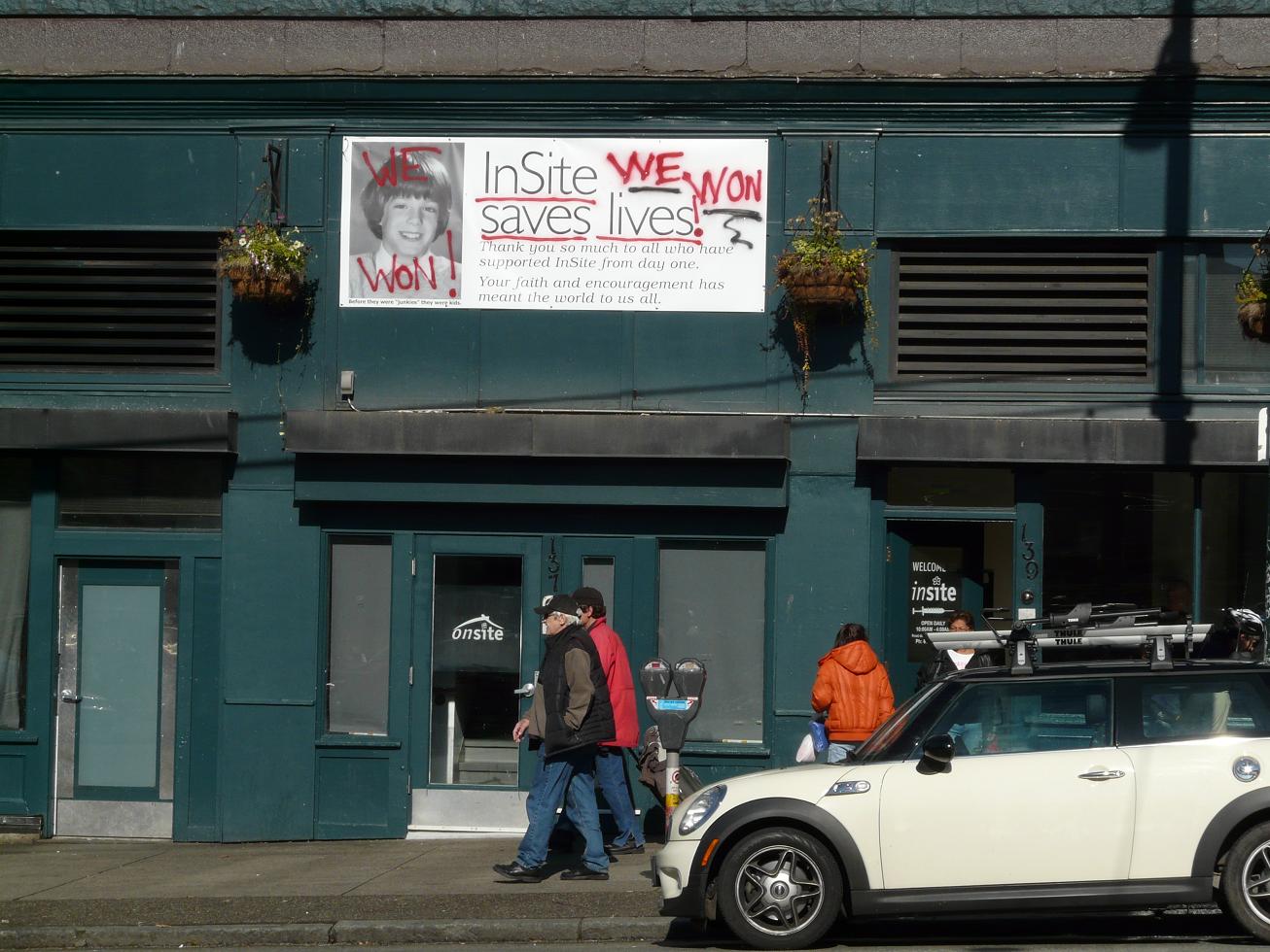 Прежде всего – да, оне победили, как справедливо указано на плакате красной краской (16-18). Детская мордочка там в связи с надписью мелким шрифтом, вам не видной: «Каждый торчок когда-то был ребенком.» Истину глаголят, б/п. А щас я вам расскажу, в чем заключалась их победа. Убедитесь перед этим, что крепко сидите на чем вы сидите. В исторический день 29 сентября 2011 года Верховный Суд Канады единогласно одобрил бессрочный вывод того, что показано на (16-18) из-под Акта о контролируемых лекарствах и веществах, с подачи правозащитников, которые в ответ на попытки закрытия этого всего местной властью доказали: закрывать нельзя – каждый право имеет, в соответствии с Канадской хартией прав и свобод. Так что теперь – и навсегда – гудит как улей... (ТМ) На моих фотографиях изображен вход в финансируемое на налоги трудящихся единственное во всей Северной Америке место, куда инъекционные наркоманы могут заскочить с улицы поколоться. Не просто получить бесплатную чистую иголку – таких мест в городе много, за год бесплатно распределяется три миллиона игл. Нет, именно колоться. Наркотики им там не дают, герыч они приносят с собой, но за процессом следит медсестра и шприцы казенные. Считается, что так снижается общая зараженность, ну и кто с передозом – откачают. За день с улицы заскакивает более 700 т.н. человек. Стоит казне это дело всего-ничего, 3 миллиона долларов в год, делят пополам конфедерация/провинция. Зато в год спасают пол-тыщи торчков с передозом. И, повторяю, победа уже произошла, по решению Верховного Суда государство обязано продолжать финансирование, потому что право колоцца относится к числу фундаментальных прав и свобод. (Громкие аплодисменты, да.)