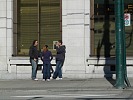 Говоря о достопримечательностях на раёне, никак нельзя пропустить то место, где персонаж (40), похоже, уже отоварился (а собака его в ту сторону все еще смотрит). Карнеги-центр, здание с колоннами и ступеньками на углу (это общинный центр так называется, не путать с чем другим в другом месте). Заметили, что там народ подозрительно клубиццо. Клубиццо он не просто так. Это самый популярный местный открытый рынок того, что всем надо (42, 43). Ты туда только подойди, все быстро объяснят. Ах, какие там типажи! Я не перестаю радоваться. Посмотрите внимательно на тонкое, одухотворенное лицо неопознанного лица (44). Падонок! Ты тоже можешь добиццо такого результата, сам знаешь каким способом. А вот на этого (45) я загадал: упадет – не упадет, упадет – не упадет... Пока я гадал, появился смотрящий (46) и пришлось быстро съэбаццо. Пиздец рисерчу.