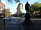 Тем временем, на стене ближайшего к выставке дома все красовался лозунг (52), поразивший меня своей универсальностью: «Не слушай, что тебе говорят!» А на продолжающийся праздник жизни все так же смотрел с кривого бочонка основатель всего этого дела Касси Джек, с непроницаемым выражением на бронзовом лице (53).