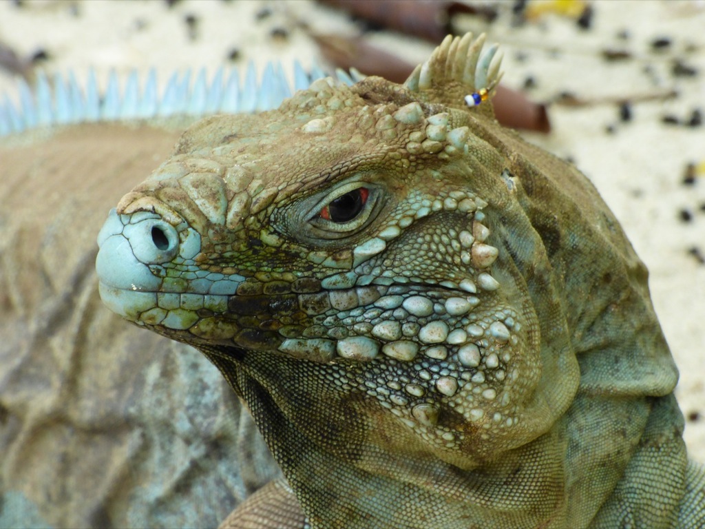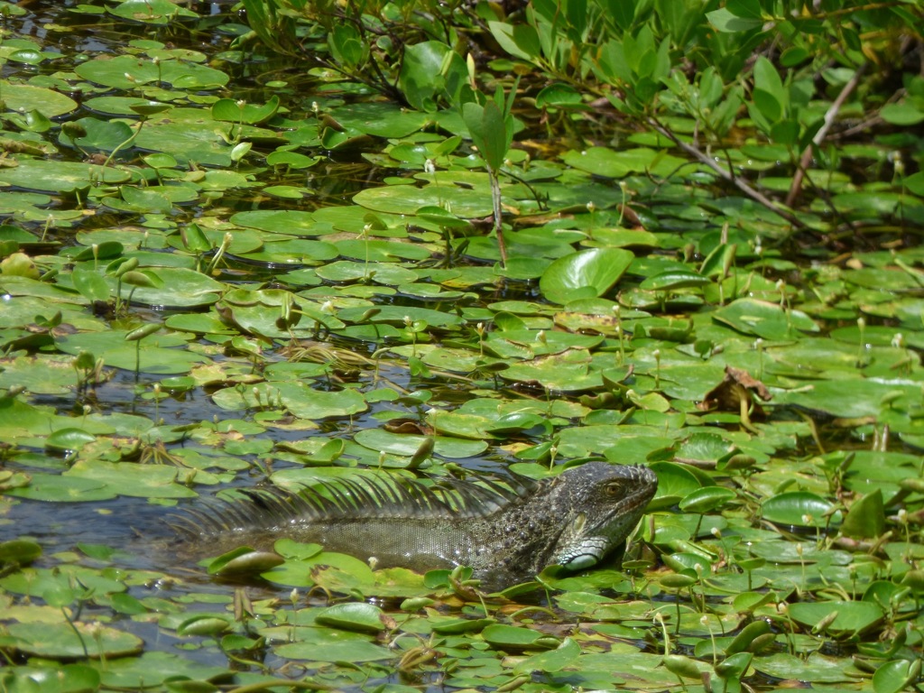Кто сказал пидороящерица? А па еблу хвостом? (1)  Между прочим, знатные хвосты (2). За которые игуаны и пострадали. В них много вкусного мяса, что понаехавшие на эти острова люди сразу прочухали. Жывотное-то размером со среднюю собаку, если без хвоста мерять.  На большинстве карибских островов игуан пожрали с концами, а чтобы озаботиться восстановлением поголовья - ну, для этого надо чтоб, прежде всего, люди нормально жили. Вот когда этого добились, тогда и ящериц стали считать. Сейчас на острове Большой Кайман, том самом, где российские денежки прикопаты, госпрограмма - довести численность голубых игуан в природе до хотя бы 10% от числа зарегистрированных инвестиционных фондов. Фондов  на острове 11 тыщ. Восстановление исторической справедливости - ведь голубые игуаны (реально голубые - 3) водились в этих краях за миллион лет до всяких других, гораздо менеe нужных голубых и тем более до инвестиционных фондов. За эти годы жывотные приобрели многие полезные навыки, например, надувать щеки (4), чесаться задней лапой за ухом (5), плавать (да, это добровольно водоплавающая и покустамлазающая ящерица - 6-8).