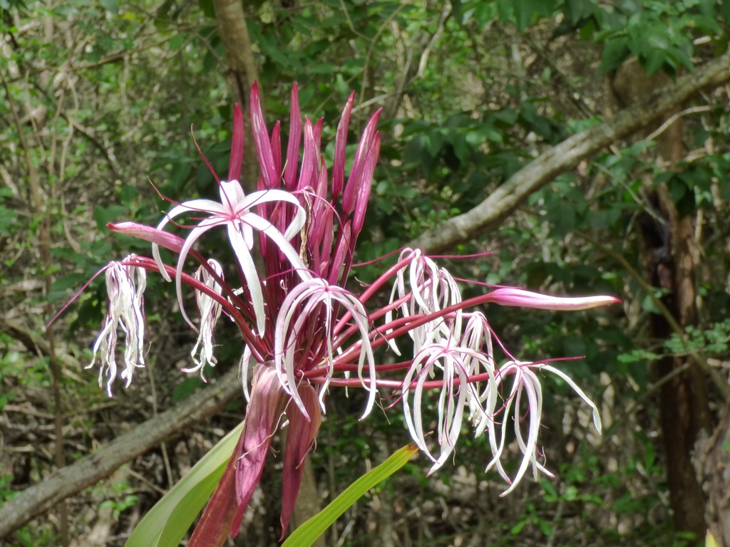 Щас покажу среди чего они там вальяжно прохаживаюццо (ТМ). Некоторые тамошние растения, надо отдать должное, выросли прямо для удафкома (9-10), но не все, не все, попадаются и образчики относительно чистой красоты, спецом для благородных дам (11-15). Вот это прямо Новый Год какой-то, гирлянды, Christmas in July (ТМ).  А вот кайманская березко (16). Да, мы сейчас далеко от средней полосы. Трудно поверить, что это (17-19) настоящее, но оно настоящее, чисто местный лес.