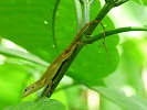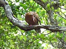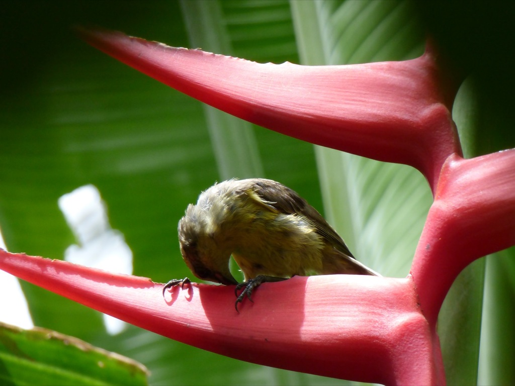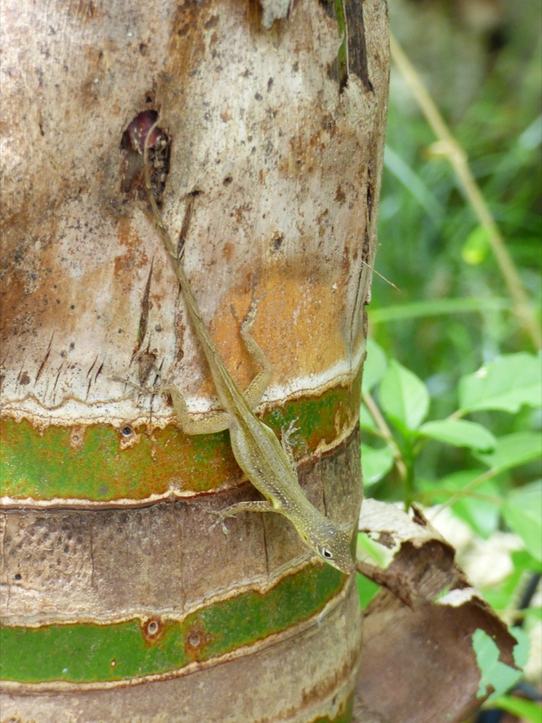И это настоящее - местные дятлы, в хорошем смысле (20, 21). Вообще, со зверушками оно живее. Вот, к примеру (22, 23). Жрут-с. А эта жабка (24) днем не ест, бережет фигуру. У нее днем сиеста, в листочке. Цветок такой большой, а птичко такая маленькая, что она не то что напиться дождевой водой, там и на искупаться хватит (25). Местная цапля красочная и с телескопической шеей (26, 27). Природный местный попугай (28; напомню, что это все ни разу не зоопарк) - почетная национальная птица острова. А этот голубок явно пытается показать нам средний палец, по мере технических возможностей (29). Мне еще тамошние нередкие неохраняемые ящерки понравились, каковых везде до хера. Слава Украине (30)? Или лучше сразу утопиццо (31)? Кстати, выражение "молодо-зелено" произошло явно из этих краев: самая распространенная местная ящерица зеленая именно и только пока молодая (32). Мне нравятся эти серьезные морды (33, 34), неуловимо кого-то напоминают. А еще там рядом живут совсем мелкие ящерки с декоративными хвостиками - у кого раздвоенный (35, 36), у кого закрученный (37). Вот она главная проблема дарвинизма и креационизма: если раздвоенный хвостик образовался у одного вида ящерок за счет эволюции, то нахера? А если это ручная работа Господа Бога, то опять же - нахера? Как объяснить это накрученное разнообразие?