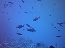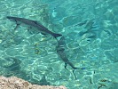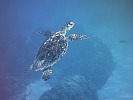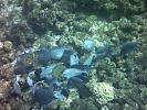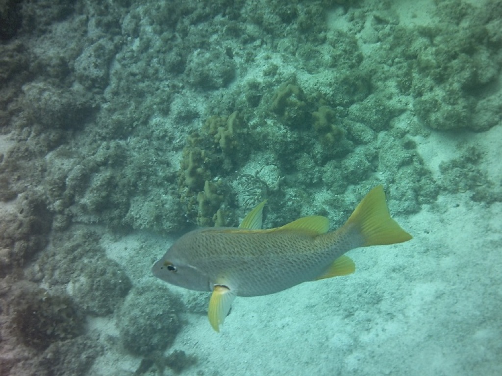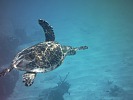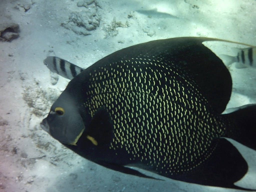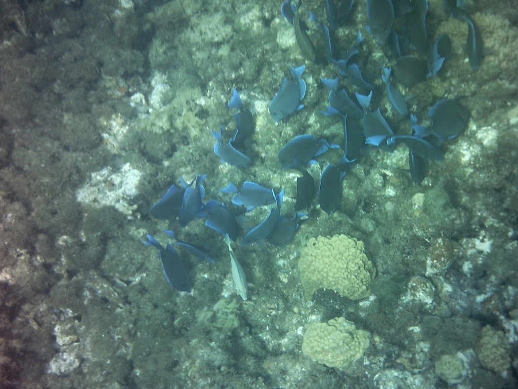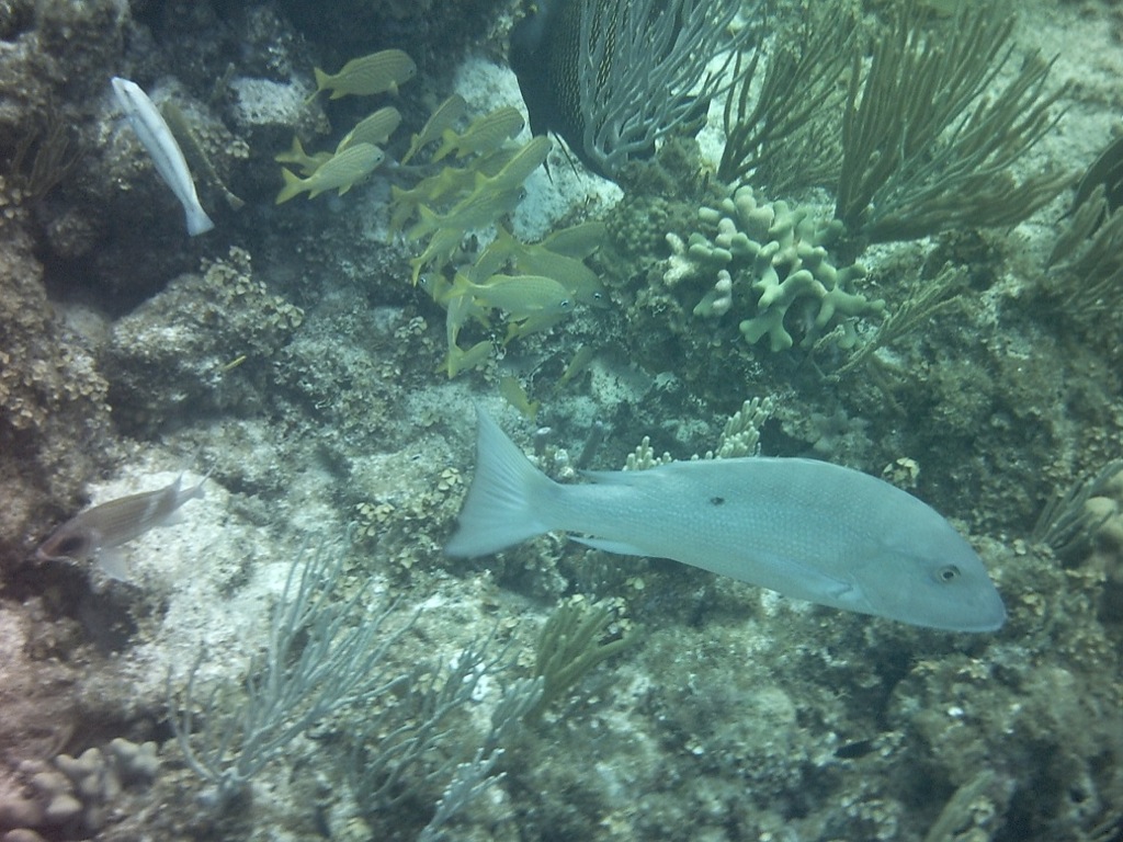 Живые коралловые заросли разбросаны по всему периметру острова, и до многих мест можно с берега минут за десять-пятнадцать доплыть, полюбоваться на гадов морских, в хорошем смысле (42-56). За черепашкой плавал довольно долго (42-45). Она, понятное дело, жывотное, и ей надо время от времени воздухом дышать, что и продемонстрировано на снимках. У рыб таких проблем нет (46-56). Кстати, рыбки это только на вид мирные. К примеру, на  53 - реальные такие рыбодворняжки, их еще называют пираньями Карибов. Попытка организовать постановочную фотографию кормления  закончилась нападением своры этих рыбок на мою жену, с последующим скандалом (мне, понятное дело, рыбки-то уплыли). Они таки вырвали у нее из рук полиэтиленивый пакет с булкой и тяпнули за руку до крови. Сцуки плавучие.