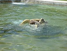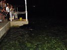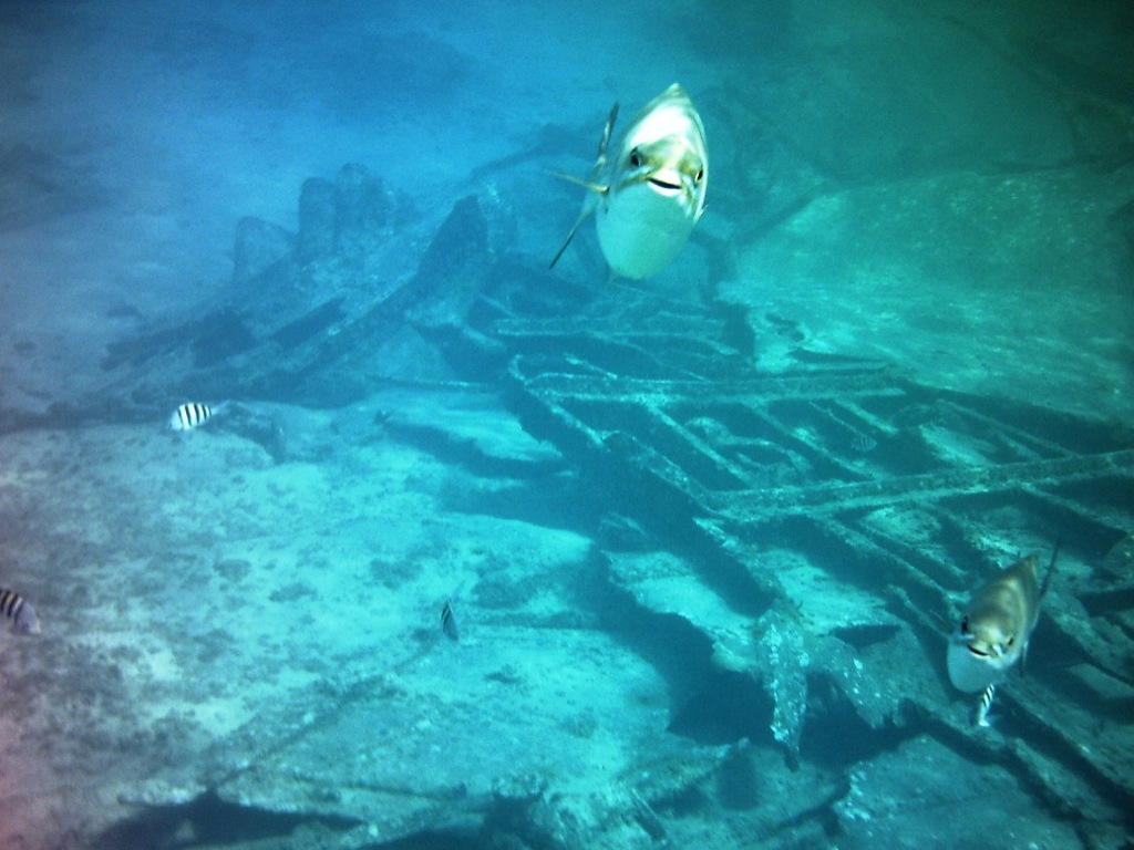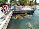 Народ, впрочем, летает на Каймановы острова совсем не на этих зверушек смотреть. Это бонус, многие туристы вообще не в курсе. Главное там - под водой, причем от берега довольно близко и вода чистая, особенно летом. Вон - всех рыбок видно, которых девушко кормит (38, 39). Если чо, это местный кабак, в котором между коктейлями можно спуститься именно по этой лесенке и проплыть между рыбками к затопленному кораблю, который здесь же в бухте лежит (40, 41).