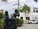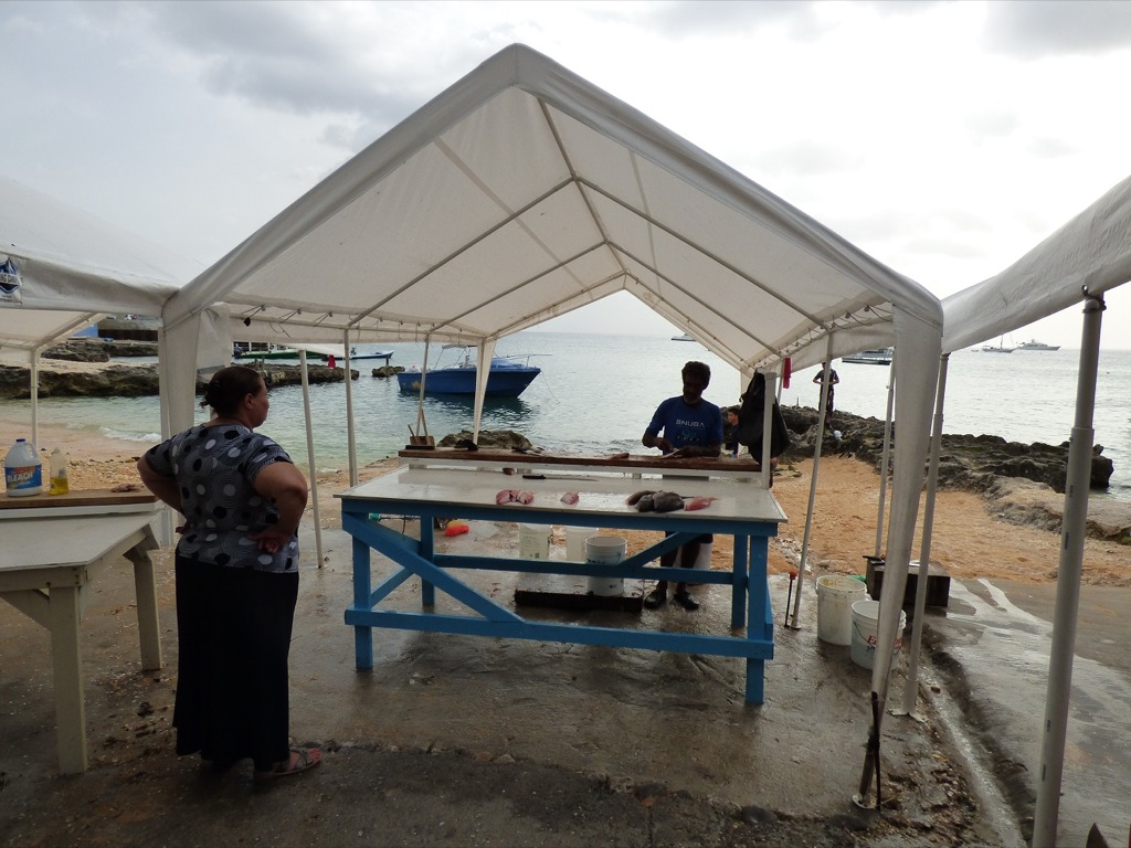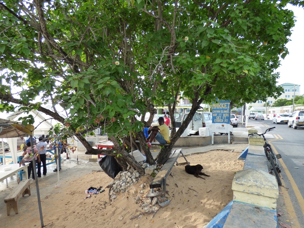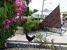 Плавно переходя от ебли к еде, отмечу, что почти все вокруг водоплавающее - оно и конкретно съедобное. Может быть, в этом должно быть стыдно признаццо, однако я таки сожрал отбивную из морской черепахи. Не так много мест на свете, где это еще можно сделать. Ничего особенного, кстати, по вкусу похоже на пресную говядину.  И рыбок местные ловят, и продают на рынке, в двух шагах от центральной площади столицы (64-66). Вы, думаю, поняли, что образ жизни этого мирового финансового центра, места регистрации 11 тыщ инвестиционных фондов, довольно расслабленный. Вот как выглядит главная площадь столицы, пл. Героев: 67. А вот как представляются местным эти герои: 68.  И таки да, курица на фотке совершенно не случайная; они бродят везде. Первое, что видишь, выходя из "международного аэропорта" - куриц с цыплятами. Мне это очень понравилось после местной телерекламы для очереди в паспортный контроль: они похваляются тем, что в Штатах прищучили средней руки чиновника из обамовской администрации именно за то, что он на этом островке свои денежки прикопал. Mол, если даже чиновники с риском прищучивания... "Несите ваши денежки..." и т.д. Между тем, деревня, и обычаи деревенские, и разговоры деревенские. Едем в такси с аэропорта, таксер описывает достопримечательности: думаете, там заповедные мангры? нихуйя там не заповедные мангры, свалка там, за кустами, в феврале неделю горела, весь остров провонял... Блeать, мне обязательно это знать? Eще одна курица, не все ж игуан показывать: 68. Это ваще выглядит как приезд ивреев на экскурсию в действующий Аушвиц. Вот еще картинки расслабленной деревенской жизни: 70 - 77. Кстати, упражнение для владельцев английского со словарем: ну-ка переведите вывеску с фотки 73. Удачную рекламу на 74 - это не я сорганизовал, оно действительно так там лежало, да.  Народ не берет себе в голову ваще. Вон - вечер, мужики расставили столики и играют в местное домино (75). А этот пацан неподалеку сосет пивко в интерьере карибского вечера (76). А тут прямо романтика какая-то (77); впрочем, это уже туризды.