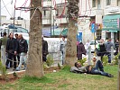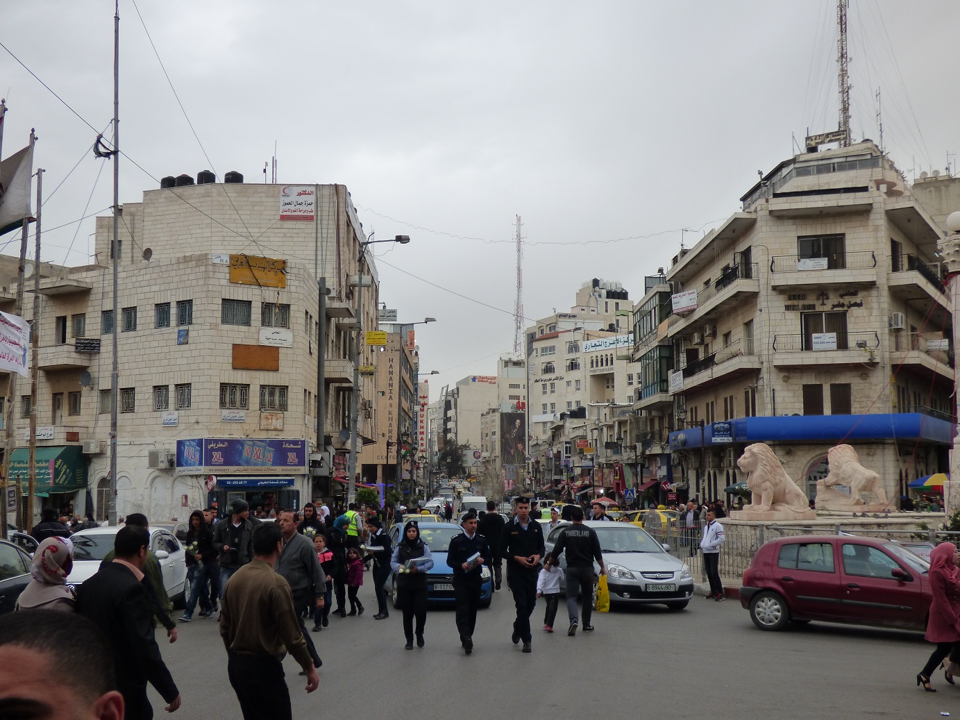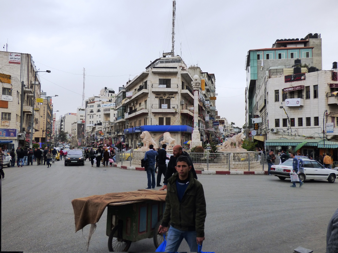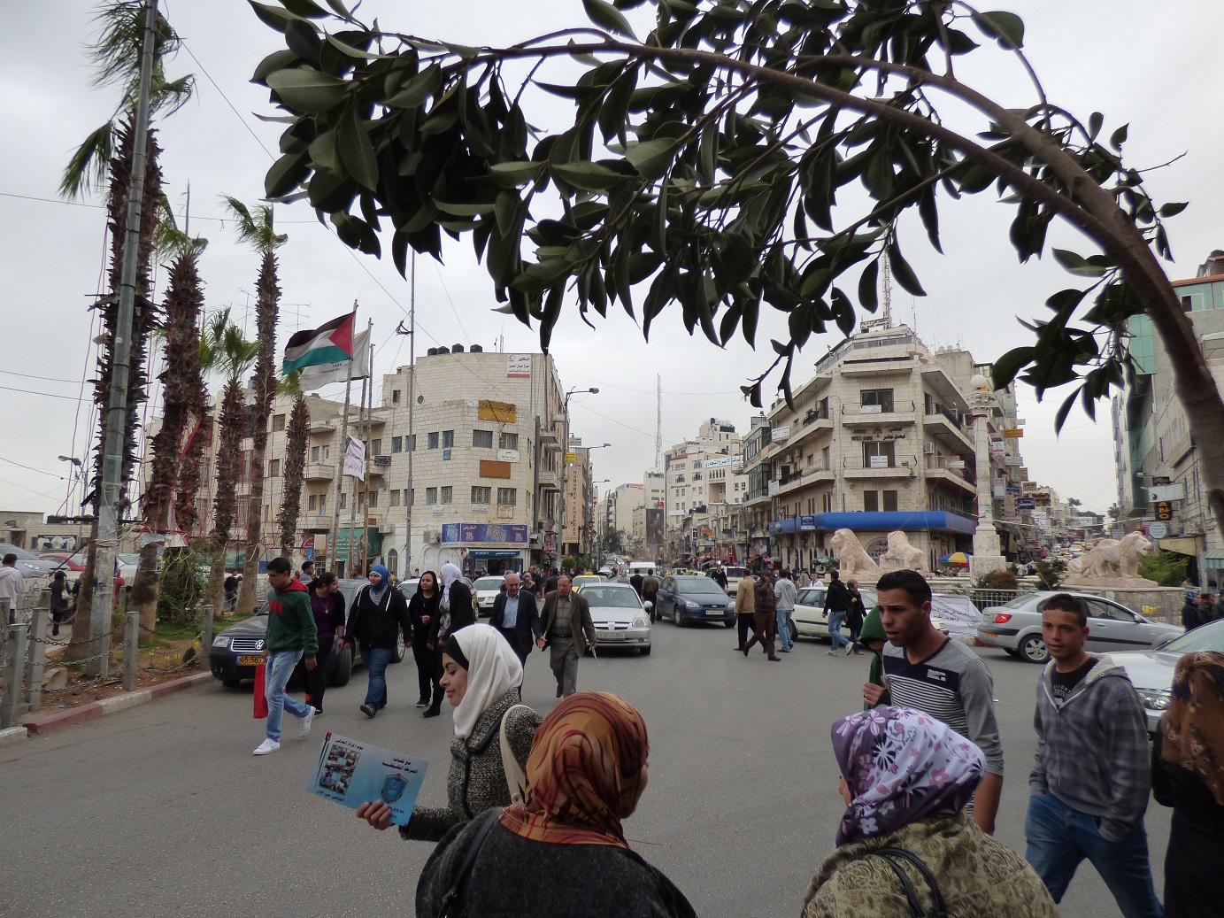 Это все – Зона А, юденфрай, национально чистой арапской оккупации (13). После истории Вадика Норшица и Юсефа Абрахами, которые случайно проехали еврейский блокпост и напоролись на арапский, откуда арафатовские полицейские перевезли их в участок, вот примерно такой (14 – это Вифлеем, но они похожие). А там уже созванная теми же полицейскими толпа и разорвала их на части – буквально, глаза выдирали у живых. Потом долго таскали разодранные трупы по ихней главной площади, Аль-Манара, вот здесь (15-20). Исторические места в определенном смысле, да, я все искал мемориальную доску. Но не нашел, почему-то. Между тем, это было, как оказалось, самое главное событие, случившееся на данной площади. С того времени, цитируя одного адекватного местного жителя, «мы потеряли доверие навсегда». «Арафат ошибся, неправильно рассчитал.» Ошибся, ога. Посмотрите на эти изможденные несносной еврейской оккупацией лица – некоторые, постарше, были тогда на той же площади – мобильность у арабов не больше, чем в России – а те, что помоложе, как показывает опыт, всегда готовы. Но свисток пока не слышен, и вот эти полицаи (18) идут (по проезжей части, как все, как везде, вы заметили, да) никого не арестовывать, а, напротив, для улучшения морального климата на улицах поздравлять случайным образом выбранных бап с, блеа, Международным женским днем. На фото (19) – счастливая получательница поздравлений. Я точно знаю, потому что моей жене тоже вручили бэлую розу с такой вот открыткой на арапском языке – предварительно окружив нас полицейской толпой, лопочущей на тарабарском наречии. Мне особо понравилось, что в столице этого непризнанного государства можно не только без проблем, всем народом болтаться на проезжей части, но, если чо, и прилечь прямо на площади №1, на газоне, с чашечкой кофе (20). Я типа напомню, что мусульмане реально не пьют, хотя это не означает, что совсем отказываются от простых удовольствий. Курить всякое им можно. Вот как раз еще иллюстрация – это тоже Рамалла, угнетенная палестинко курит кальян (21).
