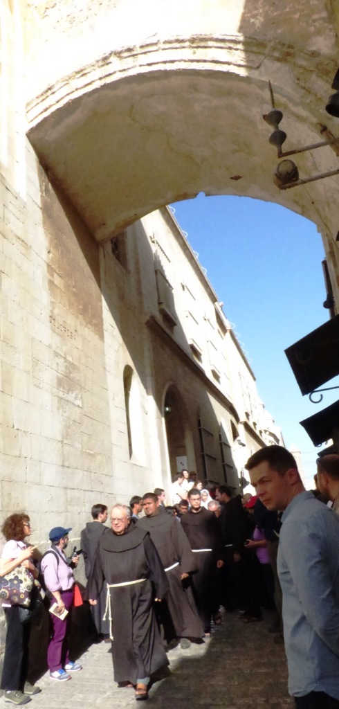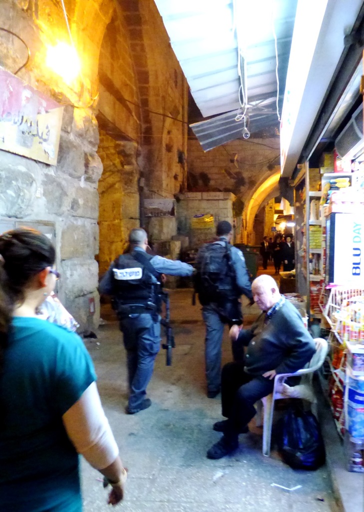 Колорита еще добавляют монахи разных ветвей христианства, между собой враждующие (5, 37-41; кстати, 41 – каждую пятницу монахи ведут народ по Виа Долороза с остановками и молитвой на каждом месте где останавливался Иисус со своим крестом; 42 - вид с другой стороны; мы тоже прошли, конечно). (Я скажу, единственный раз, когда на меня там напали, это был православный монах, который с криком «Эй, мистер!» попытался помешать фотографировать у Гроба Господня. Бог ему простит. Наверное.) Ну и арабы, конечно (43, 44), предпоследние оккупанты этой земли. Они, если кто не в курсе этих деталей, до сих пор оккупируют самое святое еврейское место, выстроив на нем наглый новодел (45). Проход туда контролируется Иорданией, и отзывы насчет этой достопримечательности на Трипадвайзере настолько плохие – хамстово, смотреть нечего, что мы решили вообще туда не ходить – нахера портить отпуск? Вообще-то, арапское присутствие добавляет колорита (46). Если б они еще других жить не учили, типо, вот как здесь – и такого много, причем стратегически именно у христианских святынь – объясняют нам как правильно исполнять завет Христов согласно Корану (47). Да ипать вас вашими верблюдами!