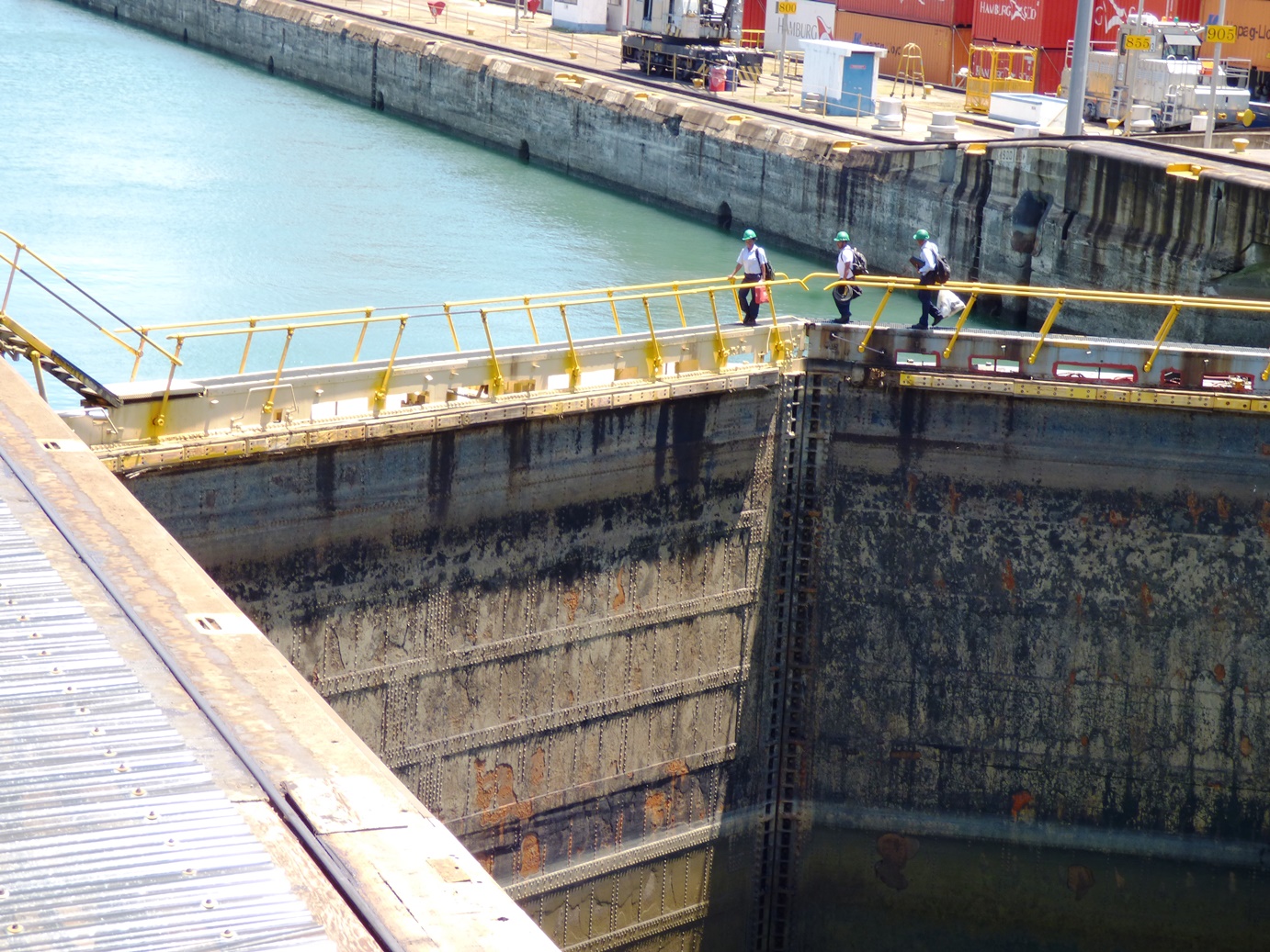 1, 2 - Это пресловутый канал. Шлюзы - небольшая часть, идут корабли большую часть времени по искусственному озеру (Гатун), что выглядит как реальное озеро, а местами как широкая река. Я читал недавно про усиление мер безопасности на канале, но конкретно мы с местными гоняли по нему на скоростной моторке, и никто не вязался.